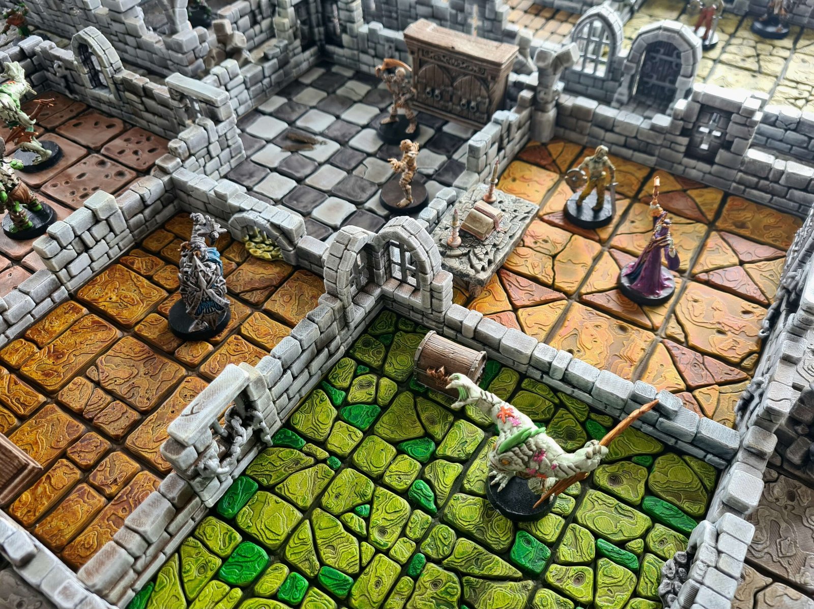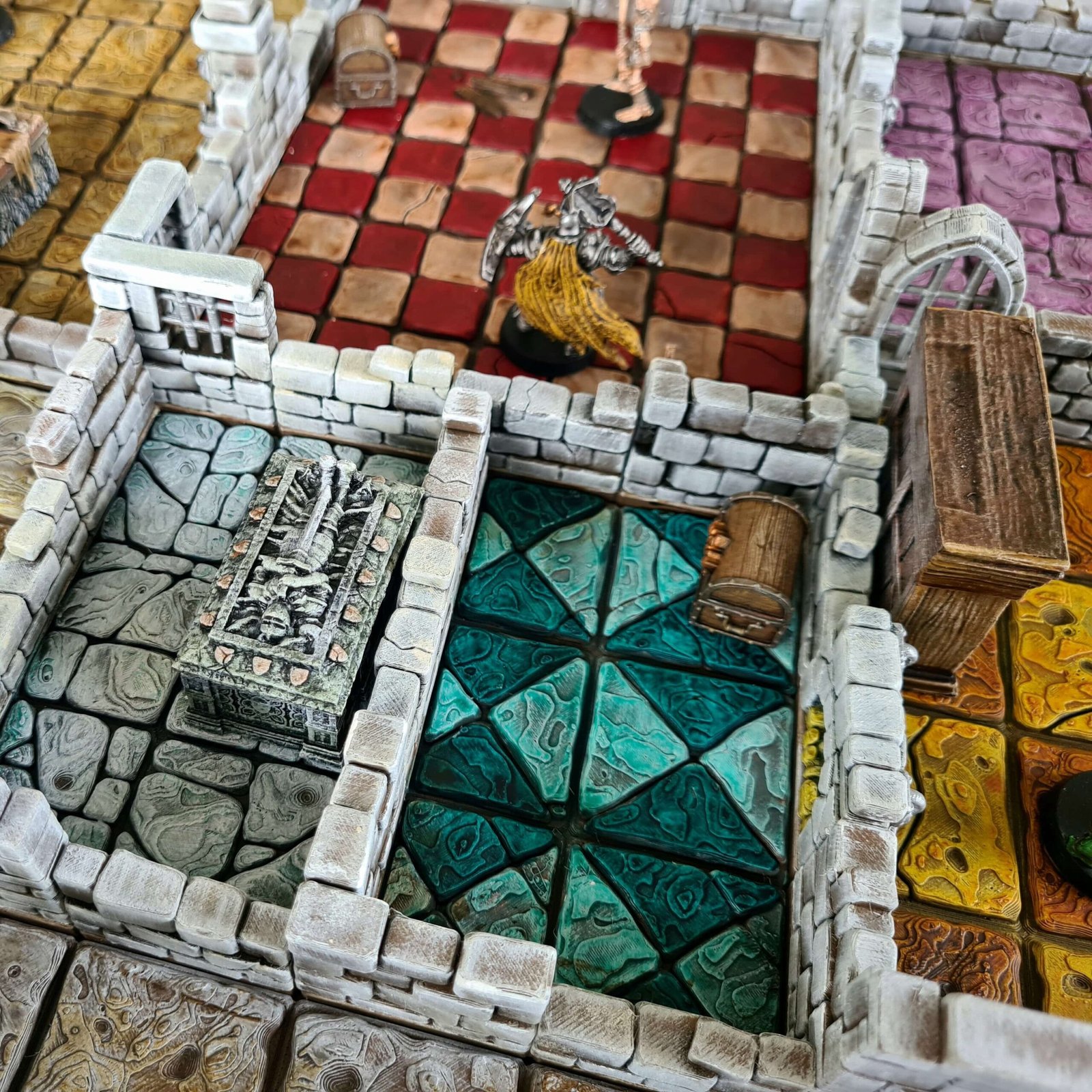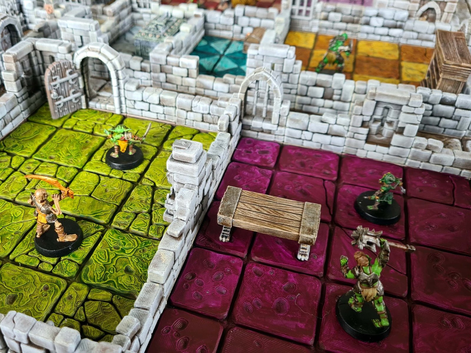 Le plateau HeroQuest 3D des Trésors du Donjon est un donjon modulaire complet, imprimé en PLA+ avec des aimants néodyme pré-assemblés dans chaque mur.