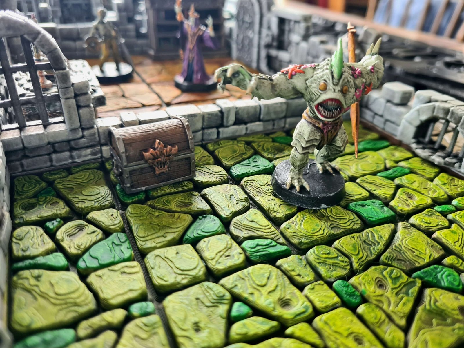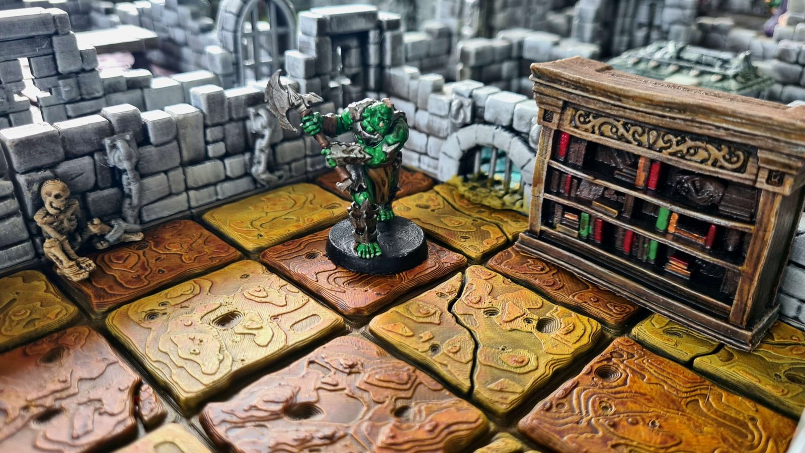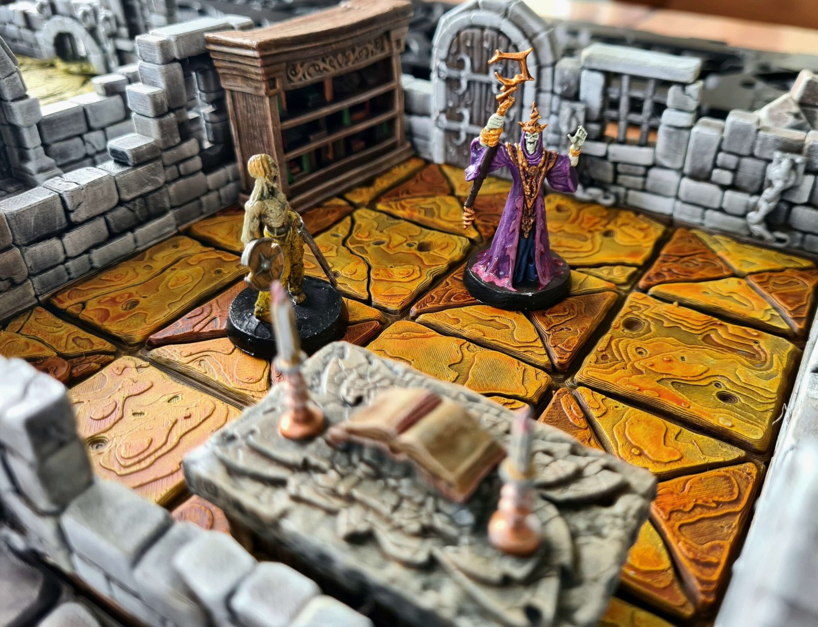 Le plateau HeroQuest 3D des Trésors du Donjon est un donjon modulaire complet, imprimé en PLA+ avec des aimants néodyme pré-assemblés dans chaque mur.