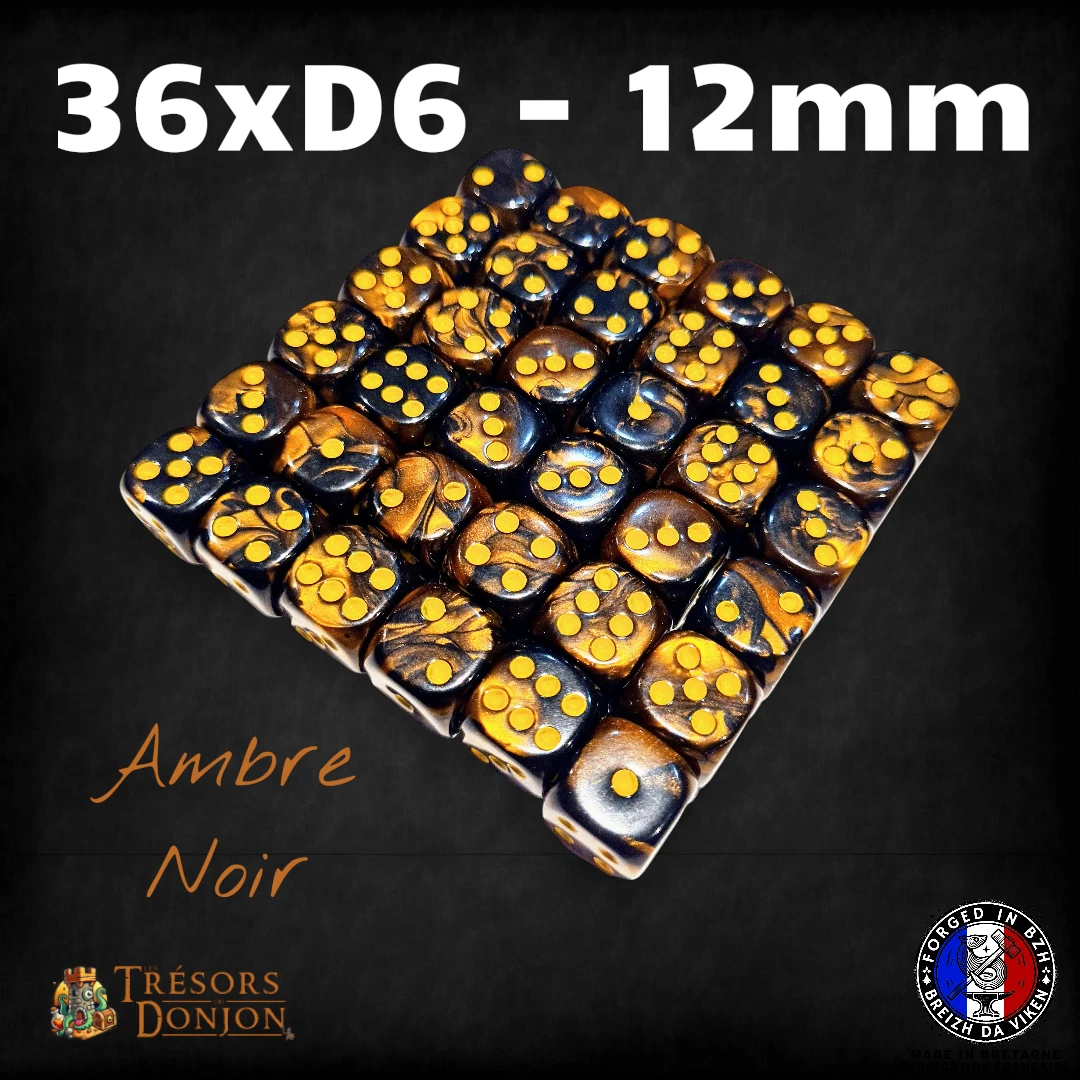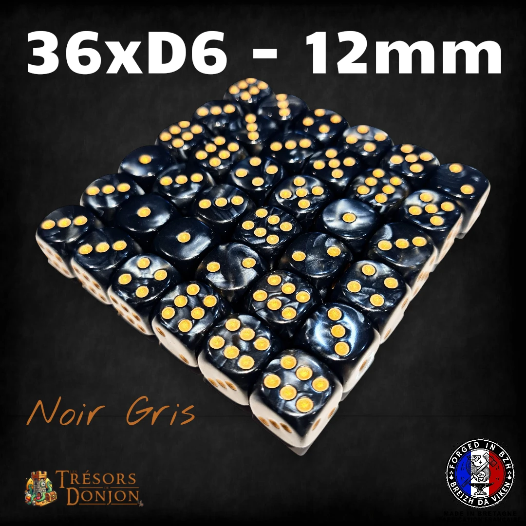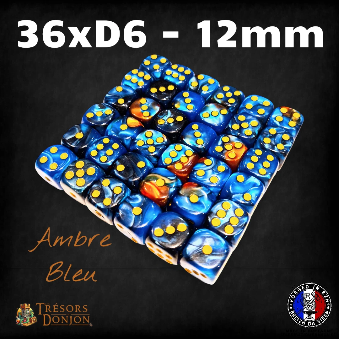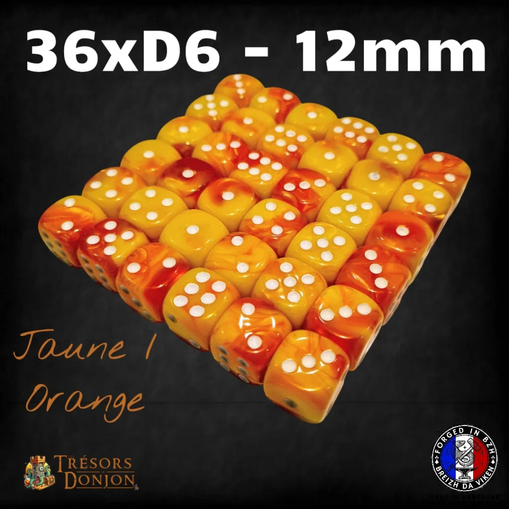 Ce lot contient 36 dés D6 (12mm) en acrylique marbré, parfaits pour les wargames, les jeux de plateau stratégiques, et toutes les situations où ton destin se joue… en rafales de D6.