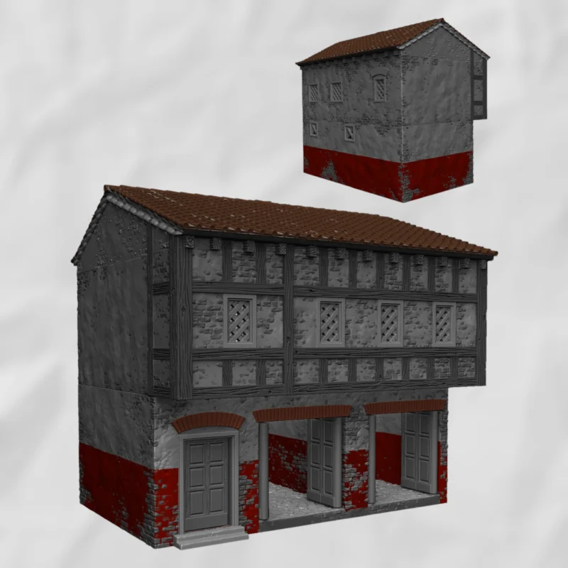 Avec ses murs de pierre abîmés, ses pans de bois détaillés et son toit classique, ce bâtiment au style méditerranéen/romano-fantasy devient un lieu idéal pour toutes vos aventures, qu’il s’agisse d’une enquête dans les ruelles, d’un combat urbain ou d’une simple scène narrative.