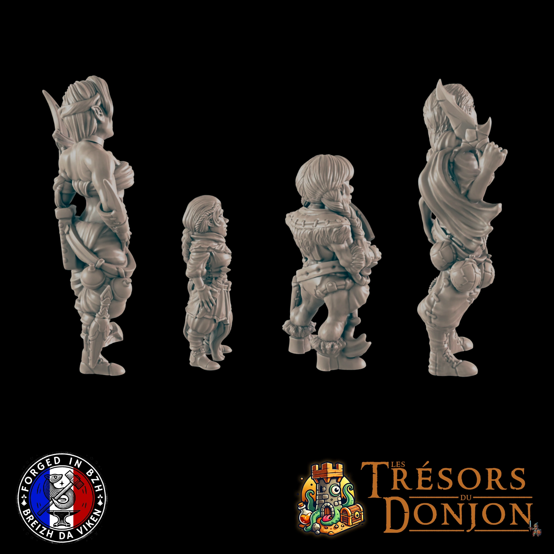 Disponibles en 28 mm ou 32 mm, elles s’intègrent parfaitement aux standards des jeux de rôle fantasy et des univers médiévaux sombres. Chaque impression est réalisée, contrôlée et préparée dans nos ateliers afin de garantir un rendu fidèle et propre, prêt à peindre.