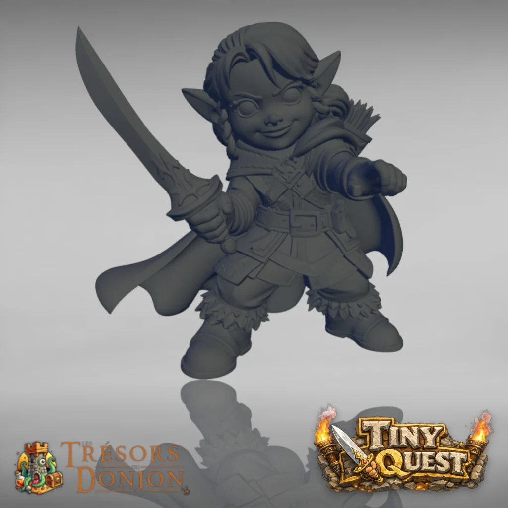 Ces figurines elfes tiny HeroQuest incarnent la mobilité, la précision et l’intelligence tactique. Elles sont conçues pour évoluer sur un plateau, dans des couloirs étroits, des salles piégées et des décors imprimés en 3D où chaque déplacement compte.