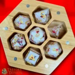 Parce que de tels dés méritent un écrin à leur hauteur, ce set est livré dans un coffret premium en bambou, équipé d’aimants pour une fermeture fiable et élégante.