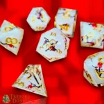 Plongez vos parties de jeu de rôle dans une atmosphère de poésie et d’élégance avec Sakura Eternis, un set de dés en résine fait main où la beauté éphémère des fleurs de cerisier rencontre la douceur laiteuse de la résine nacrée. Chaque dé renferme un fragment de printemps éternel, comme si une bourrasque de pétales s’était figée dans le temps pour vous accompagner à chaque lancer.