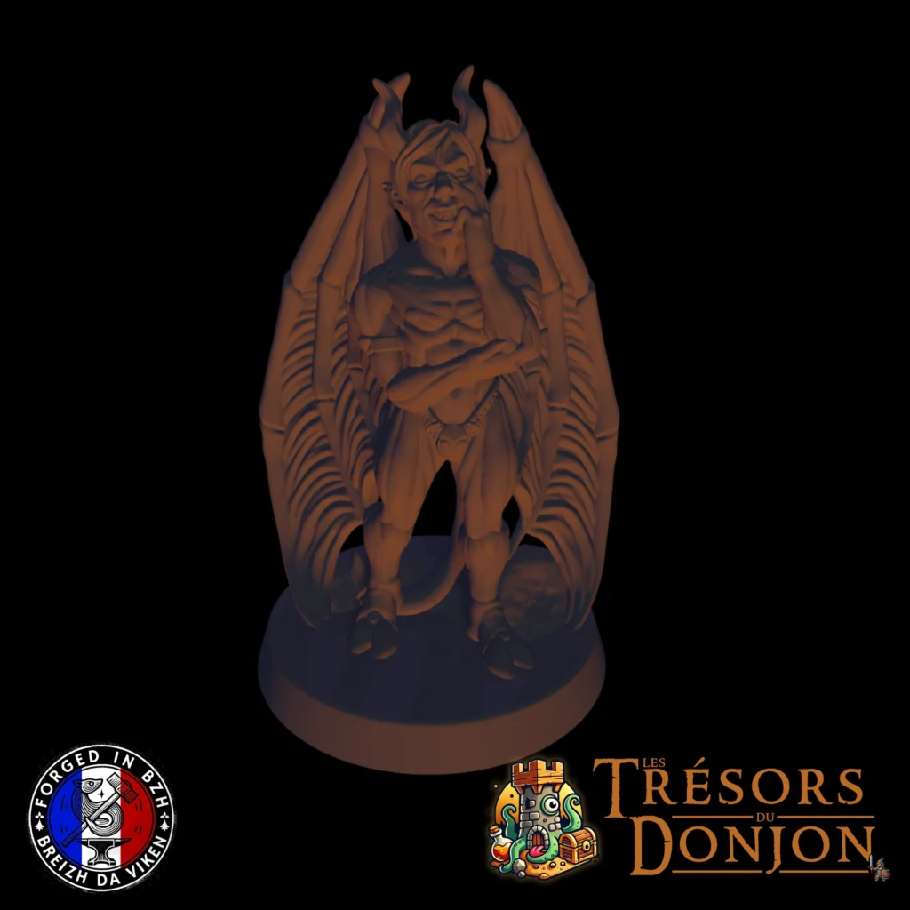 Imprimées en résine 14K HD, ces figurines offrent une finesse exceptionnelle : nervures des ailes, textures osseuses, expressions faciales marquées et flammes sculptées avec précision. Chaque pièce est idéale aussi bien comme ennemi majeur, boss de scénario, que comme élément narratif fort pour enrichir une campagne dark fantasy ou infernale.