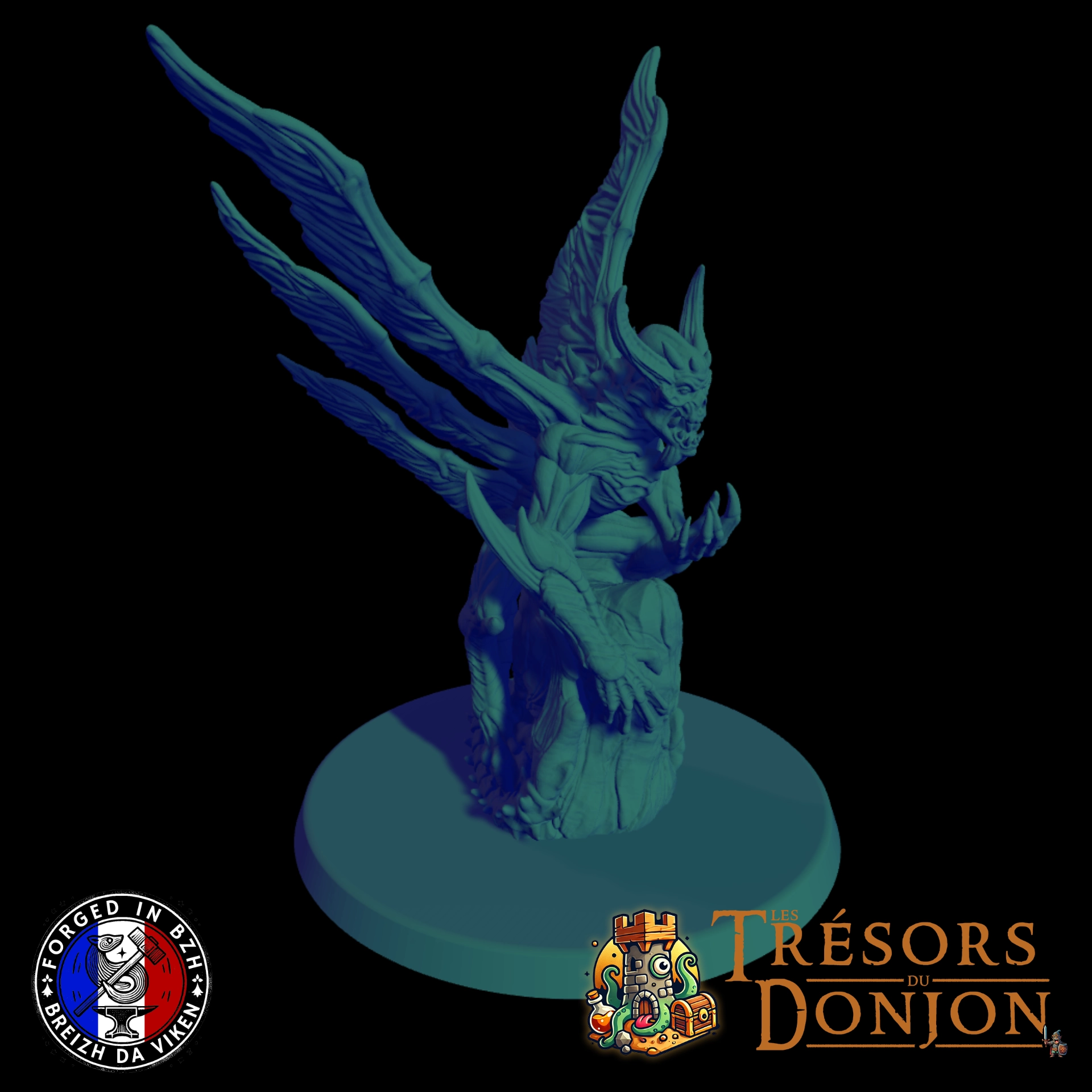 Imprimées en résine 14K HD, ces figurines offrent une finesse exceptionnelle : nervures des ailes, textures osseuses, expressions faciales marquées et flammes sculptées avec précision. Chaque pièce est idéale aussi bien comme ennemi majeur, boss de scénario, que comme élément narratif fort pour enrichir une campagne dark fantasy ou infernale.